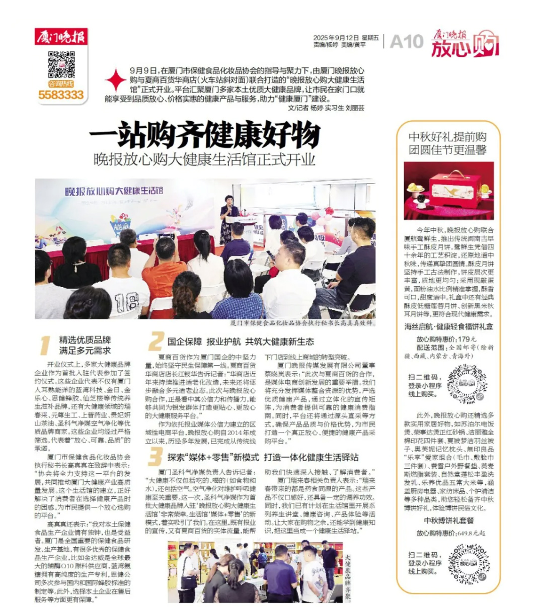 廈門晚報放心購大健康生活館正式開業(yè)啦!思健蜂膠等系列大健康保健食品受邀入駐