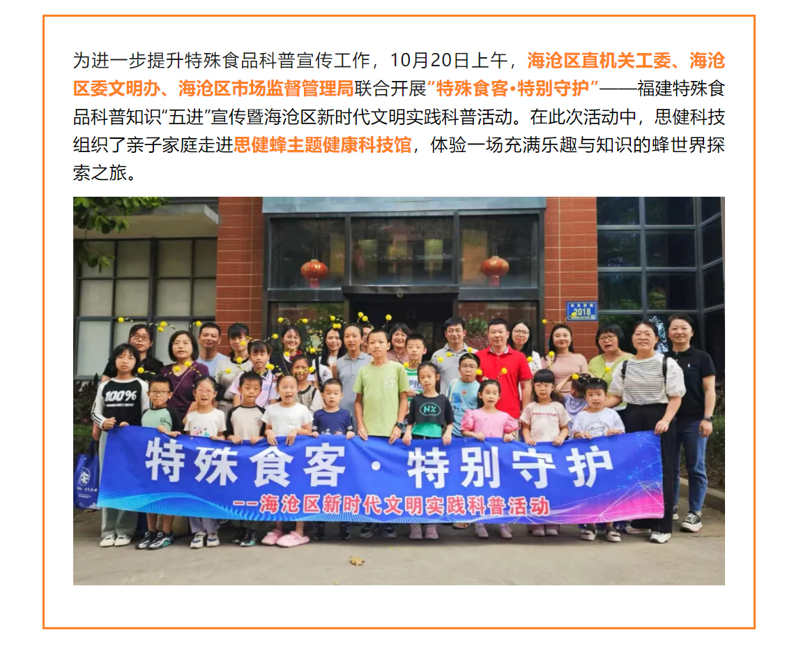 特殊食品知多少?這場活動甜蜜又有料….福建特殊食品科普知識“五進(jìn)”宣傳暨海滄區(qū)新時代文明實踐科普活動走進(jìn)思健蜂主題科技館