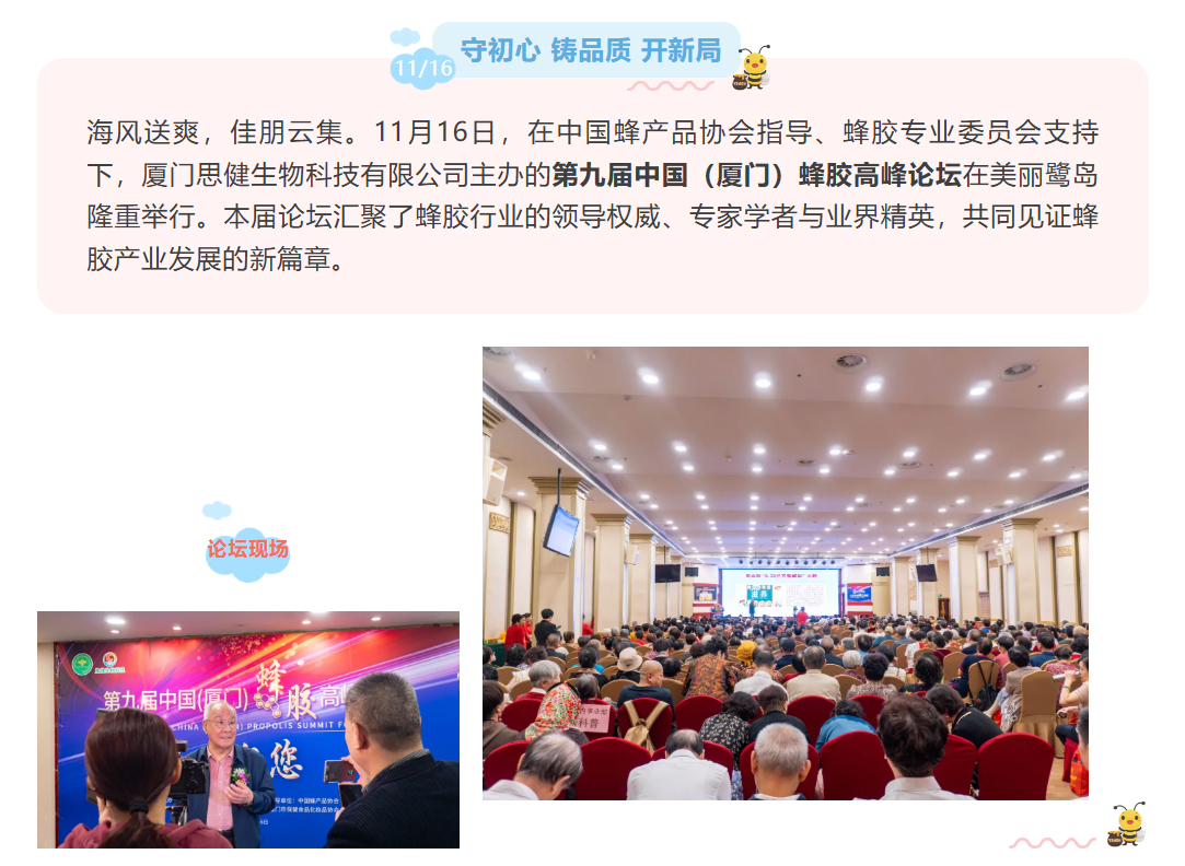 思健生物科技誠(chéng)邀您共赴廈門出席第九屆中國(guó)(廈門)蜂膠高峰論壇:與蜂業(yè)權(quán)威面對(duì)面,洞見蜂膠國(guó)際新未來(lái)