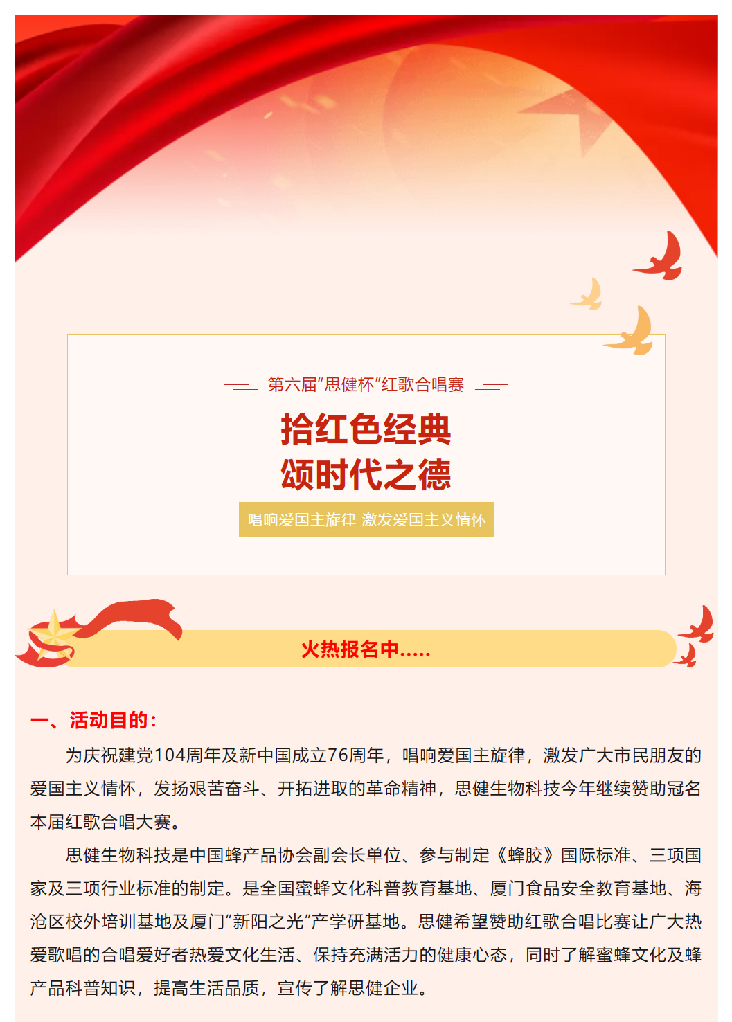 唱響紅色旋律 |第六屆“思健杯”紅歌合唱賽報名開始啦…